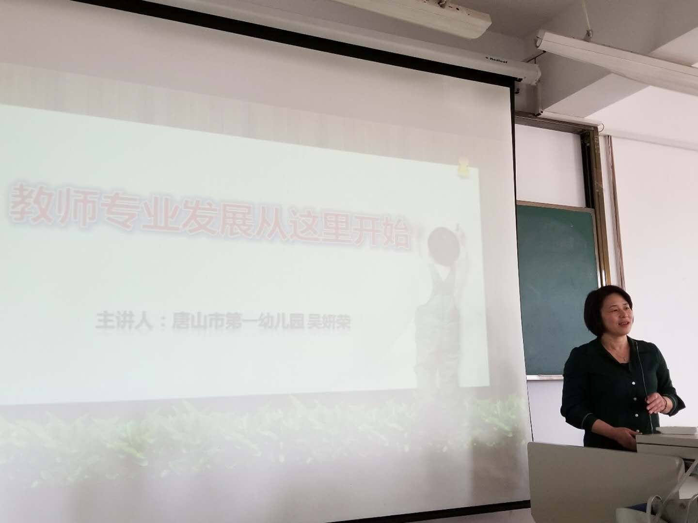 2019年5月21日下午3:00,特教楼503教室,tyc122ccVIP邀请唐山第一幼儿园吴妍荣园长为学前教育专业的同员工们举办题为《教师专业发展从这里开始》的学术讲座。讲座由学前教育教研室主任岳瑞娟老师主持,约240名员工参加了此次学术讲座。