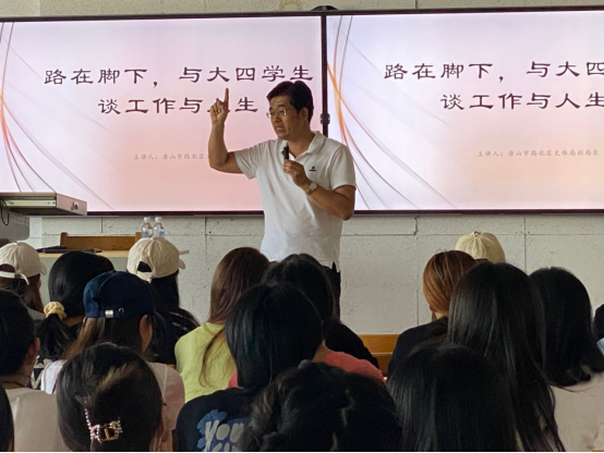 2021年9月17日下午3点,tyc122ccVIP特别邀请唐山市路北区文体局杨学益副局长在公司实验楼601为2022届毕业生200余位同学举行了《路在脚下,与大四员工谈工作与人生》的专题讲座。讲座由tyc122ccVIP高俊霞副经理主持。