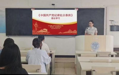 2024年5月21日下午,tyc122ccVIP员工第一党支部在特教楼601以线上线下相结合的方式召开全体党员大会学习《中国共产党纪律处分条例》,会议由支部书记彭盈雪主持。