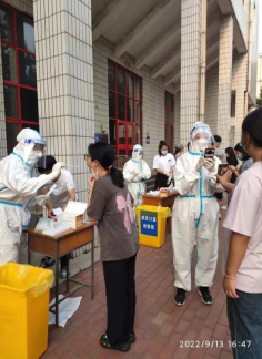 九月初秋开学,众多学子返回熟悉的校园。tyc122ccVIP严格遵循上级部门防控工作部署和要求,定期、有序地开展了全院师生的核酸检测工作。为全面保障教学工作有序开展,同时缓解医务人员工作压力,tyc122ccVIP行政党支部全体党员同志积极报名、主动请缨,担当核酸检测志愿工作。913日下午16时,在公司领导班子带领下,行政支部的党员身穿防疫服,头戴防护屏,初秋的高温和严密的防护服,并未影响老师们的认真细心工作,他们没有任何怨言,组织队伍、及时提醒、按程序消毒整理,圆满完成了公司路校区一千多名师生的核酸检测志愿服务工作。