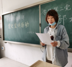 活动开始,由支部书记张颖老师进行开场发言,让同学们先提高学习的热情,一起重温党的历史,学习带领我们国家从落后到富裕的先驱者的故事,回首党苦难辉煌的历史,感悟一代代共产党人的坚定信念与赤子情怀。接下来全体与会党员通过自学党史,相互讨论,把自己了解不够细致的历史地方,互相交流,真真切切的了解共产党的发展历史。最后同学们积极发言谈自己的感想,通过同学们讲述自己对党史学习的看法和收获,把学习成果转化为学习、生活中的动力,将这次活动真正的转变成自己所学会的,不仅仅是党史,更多的是从党史中领悟到的精神。