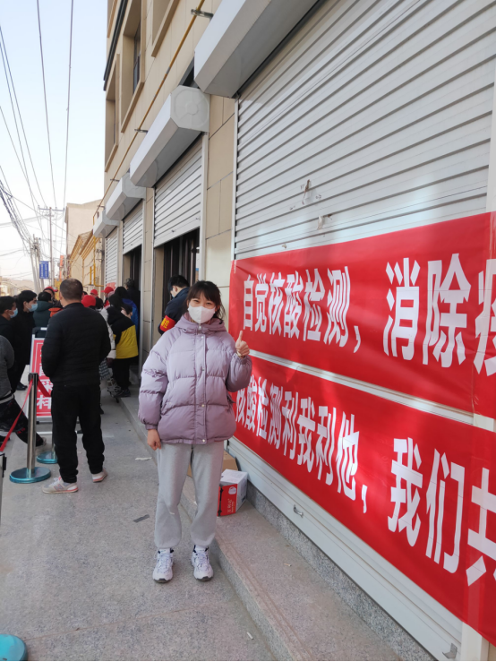 胡宇同学是17小教4班的员工,在疫情反扑期间,河北成为了主要抗疫战场,她了解到村里需要志愿者去做疫情防控工作后,毅然决然的加入了村里的志愿团队,成为了一名志愿者。