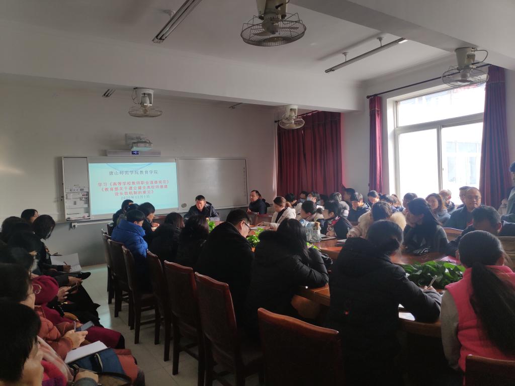 为深入贯彻习近平新时代中国特色社会主义思想和党的十九大精神,进一步加强师德师风建设,2020年12月1日,tyc122ccVIP全体教职工开展了《高校公司教师职业道德规范》《教育部关于建立健全高校师德建设长效机制的意见》,争做“新时代好老师”的专题学习。
