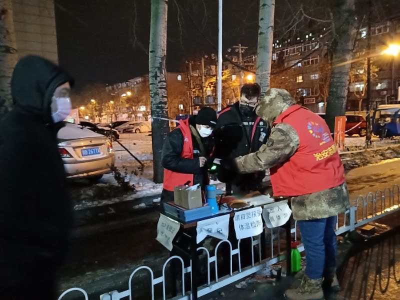 早晨5:30,在这个天刚蒙蒙亮、别人还在睡觉的时刻,刘春玺同学就已经来到福乐园和燕京小区门口,为一天的志愿工作做着准备,他需要检查每个体温扫描枪是否能够正常使用,防止在测量体温时出现误差。在疫情期间,他的主要工作是对小区门口的进出人员测量体温并进行登记,提醒社区人员出门要戴口罩,能不出门就不出门。如果发现非本社区人员,则会第一时间申报给居委会,由居委会定夺下一步行动。一天看似很短,但他所作的工作并非那么简单,福乐园小区和燕京小区是唐山市最大、人口最密集的小区之一。测量体温却不是一件容易做到的事。每当快到饭点的时候,小区的居民陆陆续续的回到家里,而他只能默默的做着自己的本职工作,没有固定的吃饭时间。更难的是他的工作时间每天长达十几个小时,回到家中将近晚上十一点钟。