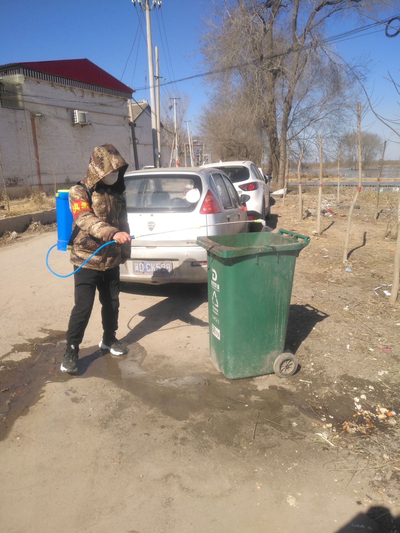 每天他会准时出现在村口的防疫检测站,对来往的人员进行温度测量并登记,如发现发热病人与外来人口,及时控制并向村委会上报解决。村里上了年纪的老人是疫情防控工作的重难点,经常有部分老人在疫情期间聚堆聊天、缺乏重视。他主要是对老人进行劝导,告知老人抵抗力较弱更容易被感染,劝说其回家做好防护并把自己提前预备的口罩发放给没有带口罩的老人。防控疫情,必须做好村中的消毒工作,下午两点他背着十多升的消毒水,对村中的主干道、垃圾桶进行消毒。