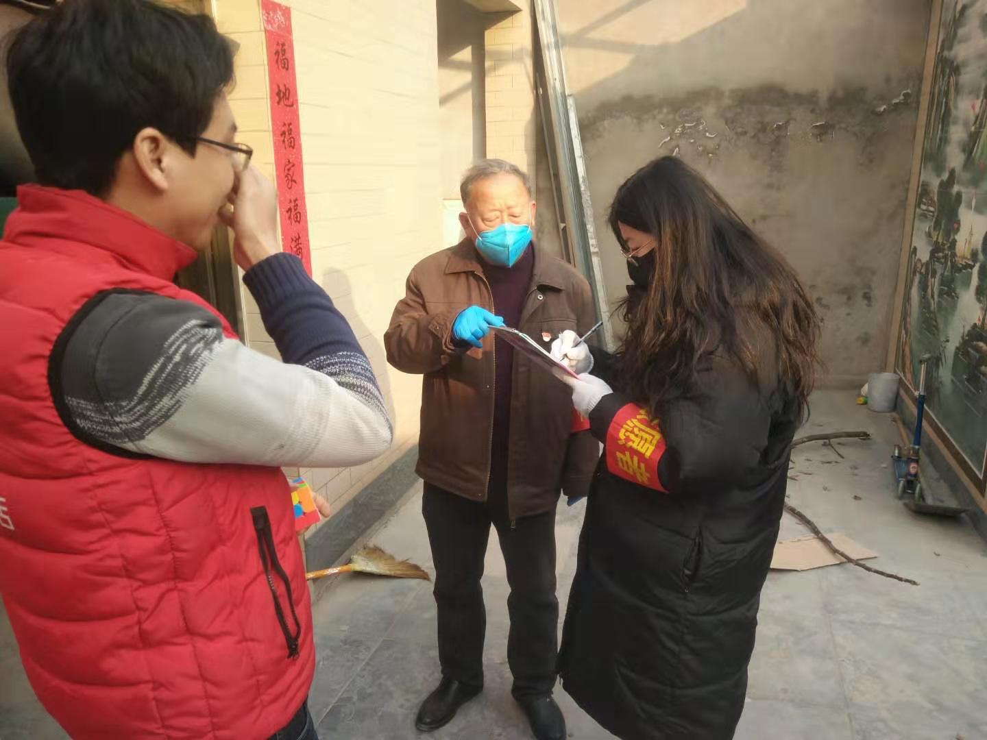 她每天早晨,先到社区居委会签到,8:30准时到达工作岗位。在疫情前期,她的主要工作是对卡口的进出人员进行温度测量并登记,若发现非本社区人员,她就会立即向居委会打电话询问情况并征求意见是否给予通行。由于村委会工作人员的年龄原因,在后期的工作中,她主要负责跟随村委会干部进行入户排查并制作出相应的表格。在排查时,她需要测量社区内每个人的体温并进行登记,如果发现有发烧者,则会立即向村委会干部进行报告。她需要向每户人家讲解疫情和防护的小妙招,以确保每个人都重视此次疫情,使所有人都加入到“抗疫大队”中去。排查工作的工作量非常大,当遇到需要排查的工作,她整天都会待在居委会,甚至有时候中午也不回去,简单吃个饭便去接着排查了。除此之外,她还需要整理其他有关疫情防控工作的电子资料,这些工作量也不容小觑,毕竟社区人员的数量众多,而且排查的内容也需要具体到每个家庭每个人的详细的信息。