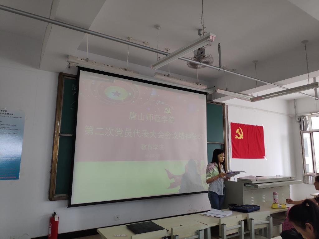 2019年6月4日,在特教楼503,教育公司党总支组织全体员工党员学习tyc122ccVIP第二次党员代表大会精神。员工党员代表王俊佳向全体党员传达了会议精神,通过解读文件、分享参会心得,让同志们感悟到这是一个团结的大会、鼓劲的大会、振奋精神的大会和开拓进取的大会。