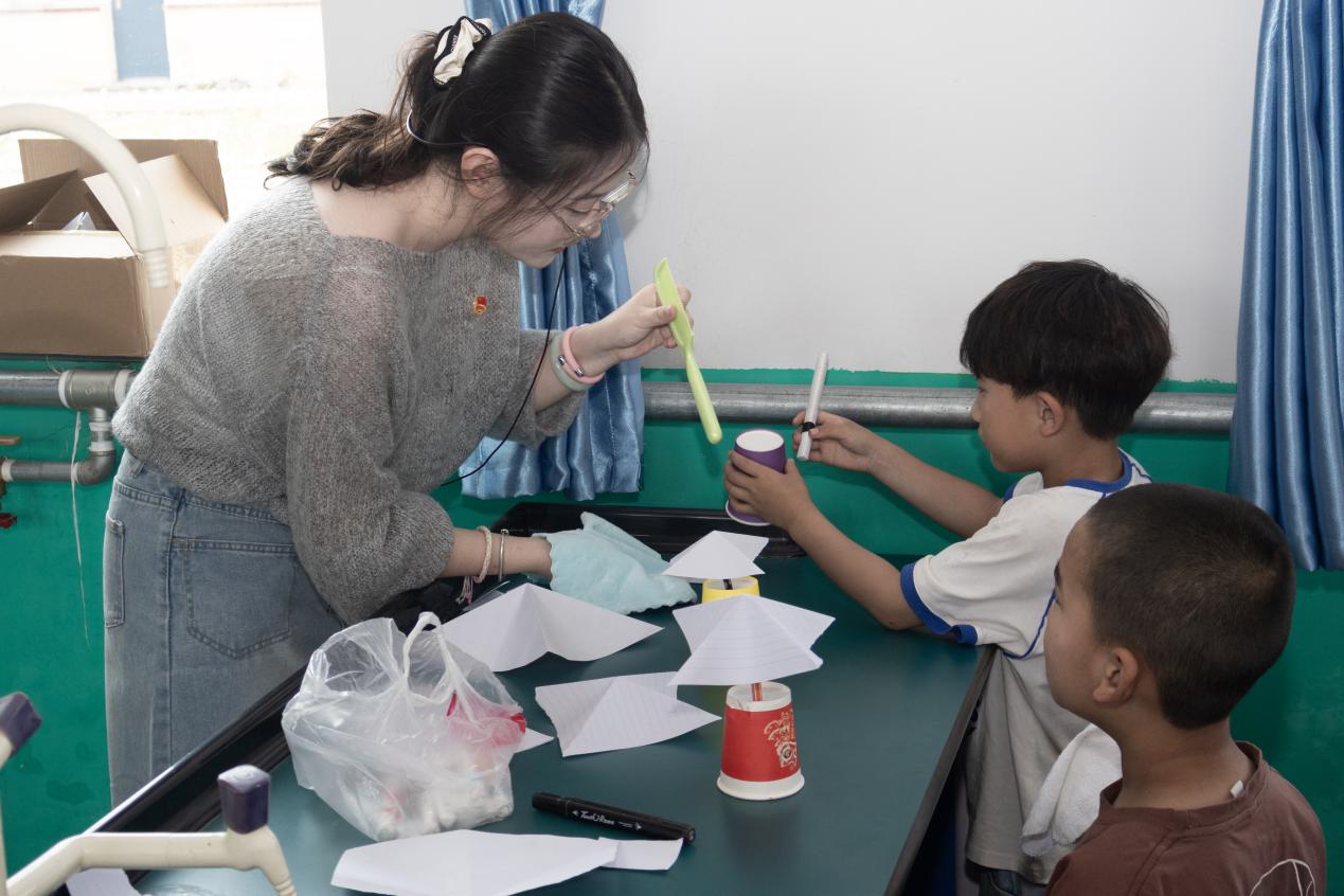 “哇,小伞在杯子上跳舞!”在科学实验室,科学教育专业同学们带来的实验瞬间抓住眼球。在“旋转的伞”实验中,孩子们用静电这一“魔法”驱动小伞旋转;“消失的画”实验里,孩子们屏息操作,惊叹声此起彼伏。通过亲自动手、亲眼见证,抽象的科学知识化作了指尖上的奇迹,有效点燃了孩子们对科学世界的好奇火种与无限向往。