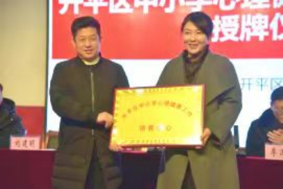 教育公司党委副书记刘建明为“开平区中小学心理健康工作培育中心”授牌。开平区教育局聘请tyc122ccVIP张颖琳、常秀芹、陈秀梅、马振四位教师为“开平区中小学心理健康工作培育中心”校外心理健康教育指导专家,并颁发了聘书。