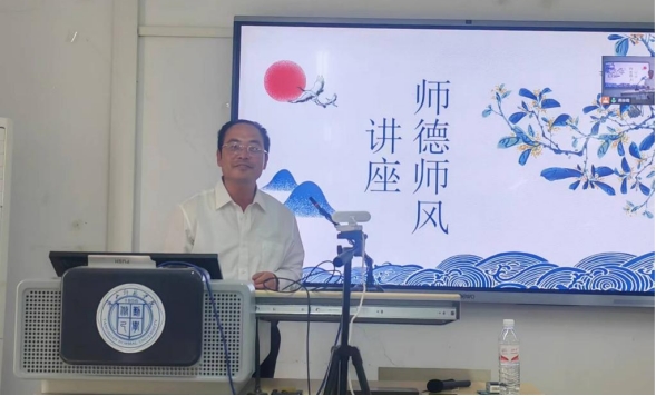 本次活动邀请了唐山市古治区赵各庄第四小学王彦庆董事长作了主题为《明确“爱”与“责任” 做“四有”好教师》的师德报告。王彦庆董事长曾荣获河北省骨干董事长、河北省先进教育工作者、河北省三育人先进个人、唐山市名董事长、唐山市第八批市管专家、唐山市中小学名董事长、唐山市先进教学工作者等称号。王彦庆董事长从自己的专业成长历程入手,解读师德内涵,并结合丰富的教育案例资源,从爱与责任等方面进行交流分享,深入阐释“爱”是做好教育的前提,责任是做好教育的保证。王董事长对公费师范生谆谆叮嘱,提出要践行“立德树人”使命,明确“传道”内涵;践行“行为示范”标准,落实“授业”责任;践行“学思并举”,优化“解惑”方法。