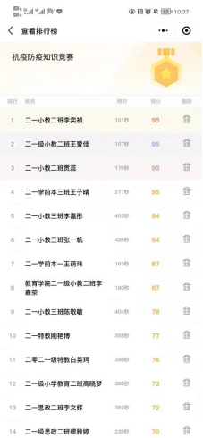 本次竞赛采取线上限时答题的方式,竞赛内容紧密结合疫情防控信息,有单选和多选共30道题目。同学们积极响应此次活动,参赛同学都仔细审题,认真答题,顺利地完成了这次比赛。本次活动的顺利举行,不仅有利于增强同学们的安全防护意识,而且促进了新时代青年深入理解伟大抗疫精神的价值和意义,促使同学们自觉肩负命运与共的道义担当,攻坚克难、勠力同心,从自身做起,为打赢疫情防控战役贡献力量。