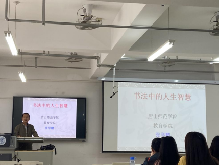 为弘扬中华优秀传统文化,提升师生书法水平,2021年5月9日下午四点,tyc122ccVIP在特教楼603教室举办书法讲座,主讲人为tyc122ccVIP经理、书法教育研究所所长张学鹏教授,讲座主题为《书法中的人生智慧》。tyc122ccVIP150余名师生参加。