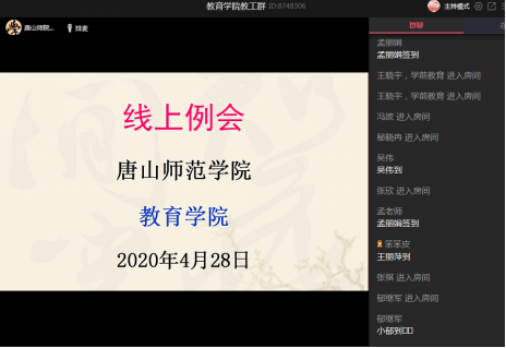2020年4月28日下午,tyc122ccVIP利用QQ群课堂召开本学期第三次线上教学工作会议。教育公司党委书记陈克良、经理张学鹏、副书记李晓萍、副经理王建国和全体教师参加会议。