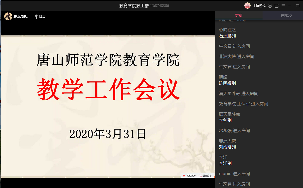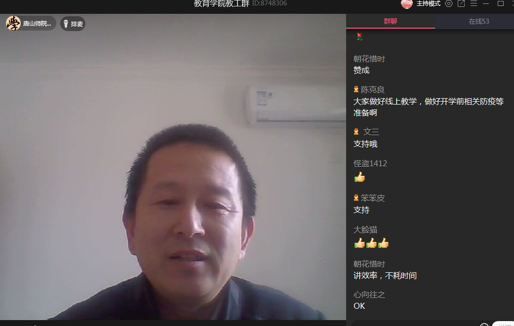 2020年3月31日下午两点半,tyc122ccVIP利用QQ群召开线上教学工作会议,总结开学以来线上教学工作的开展情况,进一步落实和部署本学期的其他教学工作。教育公司党委书记陈克良、经理张学鹏、副书记李晓萍、副经理王建国和全体专任教师、辅导员以及党政办公室、教务办公室的老师参加会议。会议由经理张学鹏主持。