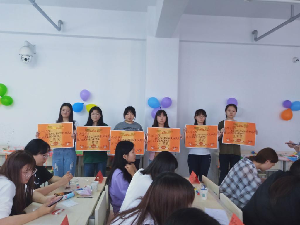 对我部提供的风筝进行绘画与装饰为比赛项目,分数由大众评委评定。经过同学们的不懈努力,每个风筝都变得栩栩如生,得到了大众评委一致好评与认可。最终在众多作品中有六个作品脱颖而出,其中作品海绵宝宝那治愈系的微笑就像初夏的太阳一样给人温暖。本次活动获得一等奖的是心理咨询户丁丁、刘晓阳;二等奖获得者是学前教育本科一班王依然、徐蕾,应用心理张炫莹、郭萧;三等奖获得者是特殊教育一班杨婷、高媛,学前本科二班杜子怡、王雨萱,宋雨晴、王晴宇。