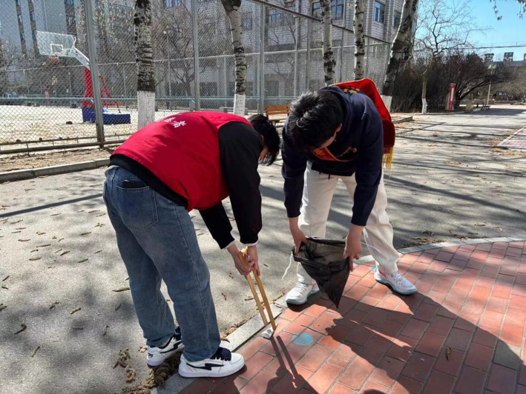 活动期间,志愿者们分工协作,对教学楼、绿化带、时代广场等公共区域进行了全面清理。他们手持垃圾夹、扫帚、垃圾袋等工具,仔细清扫散落的纸屑、塑料包装等杂物,并对卫生死角进行了重点整治。同时,志愿者们还向过往师生宣传垃圾分类知识,倡导减少使用一次性物品、节约资源等环保理念。经过两天的努力,校园环境焕然一新,志愿者们的身影成为春日校园里一道亮丽的风景线。