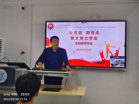 最后陈克良书记对师院在申硕方面取得的成就进行了总结,并在此基础上希望2022级的新生们立志民族复兴,不负韶华,不负时代,不负人民,继往开来,再展风华,让我们共同的家——师院,越来越好!