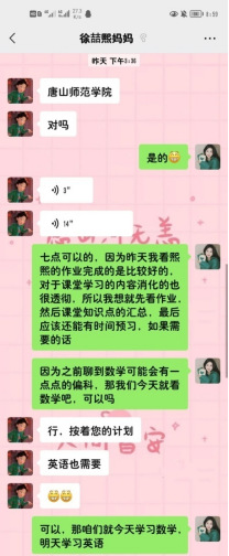 截至目前,志愿者已累计达到213名,为抗疫医护人员子女提供了近2000小时的线上课程辅导服务。在正式开课前,小老师们主动与家长沟通,根据家长的要求,详细了解孩子们的学业情况,制定“一生一策”的精准辅导计划,为“云辅导”的孩子们上好每一堂课。“老师,这段英语我会读了,听我读给你听。”“姐姐,我长大了要你一样当老师!”每当听到这些话语,志愿者们总是倍感欣慰。受辅导员工张琳茜的母亲是唐山某医院疫情防控的医务人员,已经两周没能回家了,她反馈说:“老员工老师认真负责,讲清楚、细致,孩子很喜欢和大姐姐一起上课,学习成绩也有了进步,可真是解决了我的后顾之忧。