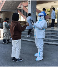 每天的核酸检测是重要工作!因路北区核酸采集任务量大,派到公司路校区的常规工作人员只有2名,面对医务人员不足的情况,tyc122ccVIP领导班子将三个公司的员工统筹管理,按每日抽签顺序有序进行。同时,tyc122ccVIP党委书记陈克良、副书记刘建明、副经理王建国勇于担当,亲自上阵化身“大白”,主动担任志愿者。从每天早八点开始,他们穿上防护服,一直不停地扫码录入信息,同时提醒员工不要触碰检测用具等,站时间长了就坐下接着干,往往到下午一点左右才能吃午餐,吃完不休息连轴转,直到全部人员检测完毕。公司路校区的核酸检测在有力有序组织中,从未出现信息有误的情况,对此,路北区相关部门高度认可和赞扬,并随时调配其他完成检测任务的医务人员在每日后半程检测中加入进来。