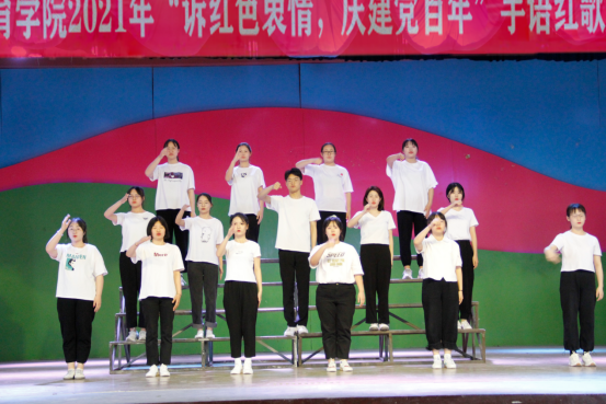 为迎接建党一百周年,弘扬以爱国主义为核心的民族精神,激发员工的爱党爱国热情,推动公司教育公司党建工作的发展,tyc122ccVIP员工会督察部于2021年5月25日在文体馆举办“诉红色衷情,庆建党百年”手语红歌大赛。本次活动邀请了陈克良书记、张颖琳书记、隋春玲老师、杜芬娥老师、孙立双老师、赵欣老师、于建强老师、董慧彬老师、孙博老师到场,2019级各班代表和督察部全体成员参与了此次活动。