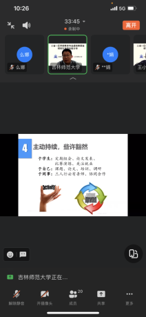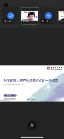2023年4月27日上午,tyc122ccVIP学前教育专业参加协同提质院校沈阳师范大学主持的教育部三省一区学前教育虚拟教研室活动。本次活动主题为研究生指导经验分享,是学前教育虚拟教研室系列教研活动的开端。会议采用钉钉线上会议形式,包含公司学前教育专业教师团队在内的四所高校教师参加。