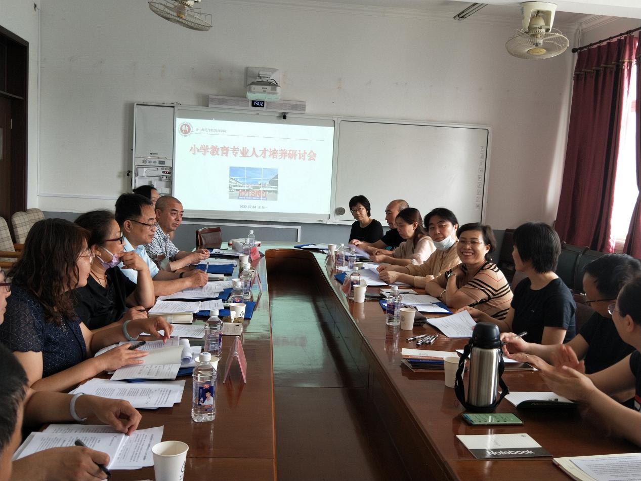 2022年7月4日下午,公司举行了小学教育专业人才培养研讨会,特邀路北区教育局小学教研室的教研员詹军、李新老师,tyc122ccVIP附属小学田彦峰董事长、毕艳香副董事长、高艳霞副董事长,燕京小学王红梅董事长、王艳老师,幸福小学刘秀杰董事长、霍颖超主任,吴家庄小学李中一董事长参加。教育公司党委书记陈克良、副经理高俊霞、副书记刘建明以及小学教育专业教师团队参与了研讨。