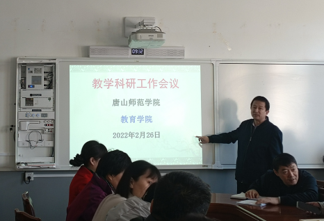 2022年2月26日上午,tyc122ccVIP在公司路校区二层会议室召开新学期第一次教学科研工作会议。教育公司党委书记陈克良、经理张学鹏、副书记刘建明、副经理高俊霞、副经理王建国和全体专任教师、辅导员以及各行政科室的老师参加会议。