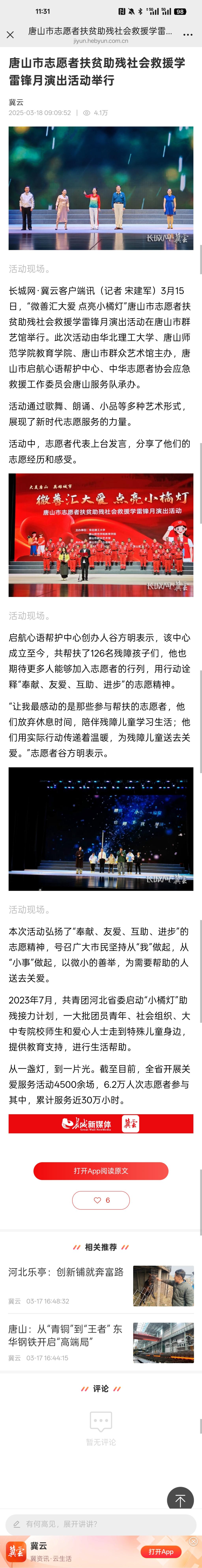 唐山市志愿者扶贫助残社会救援学雷锋月演出活动举行
