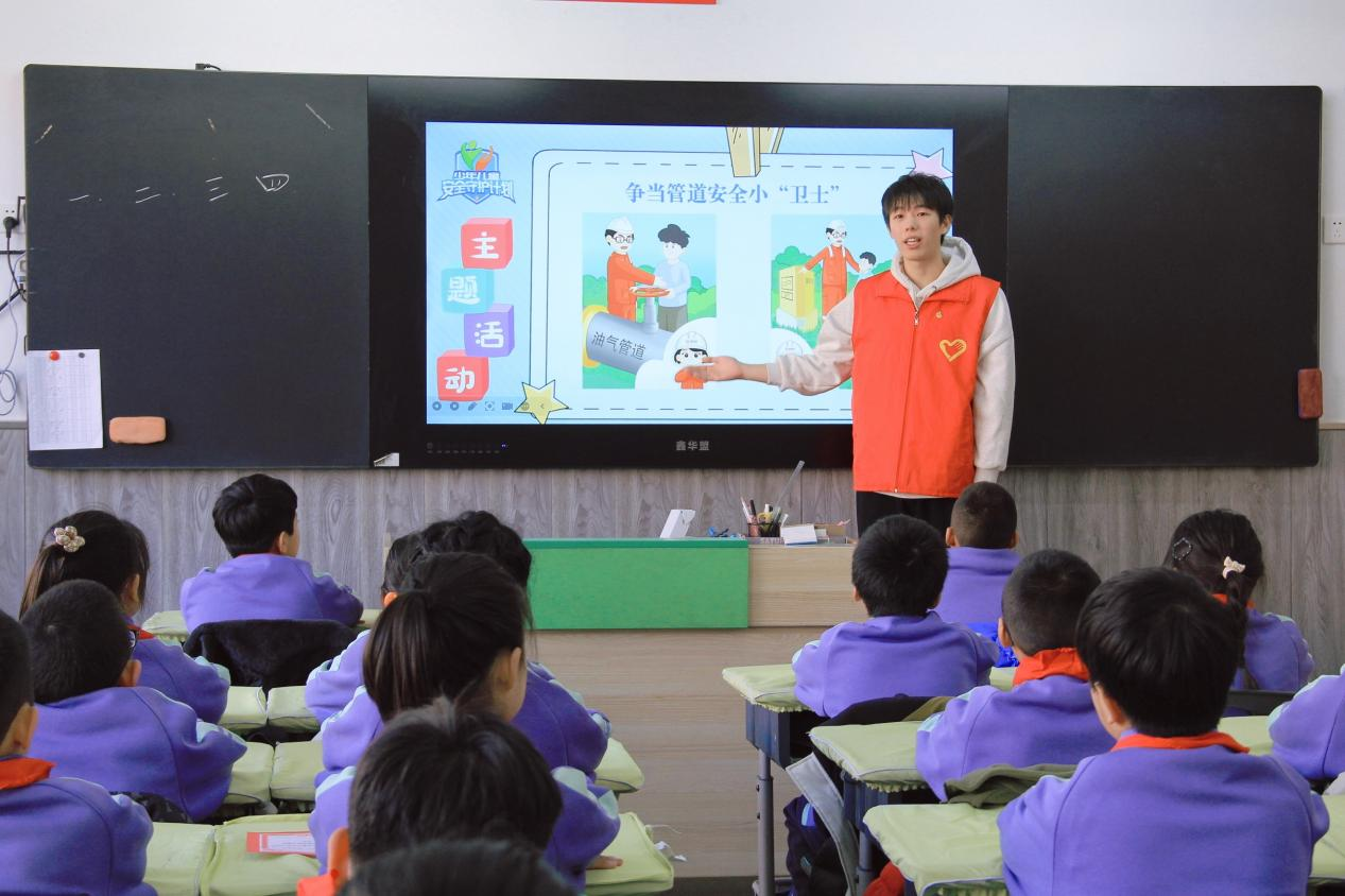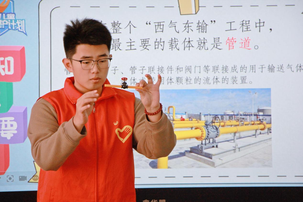 (宣讲团成员吴润龙向小员工讲解保护管道相关知识)