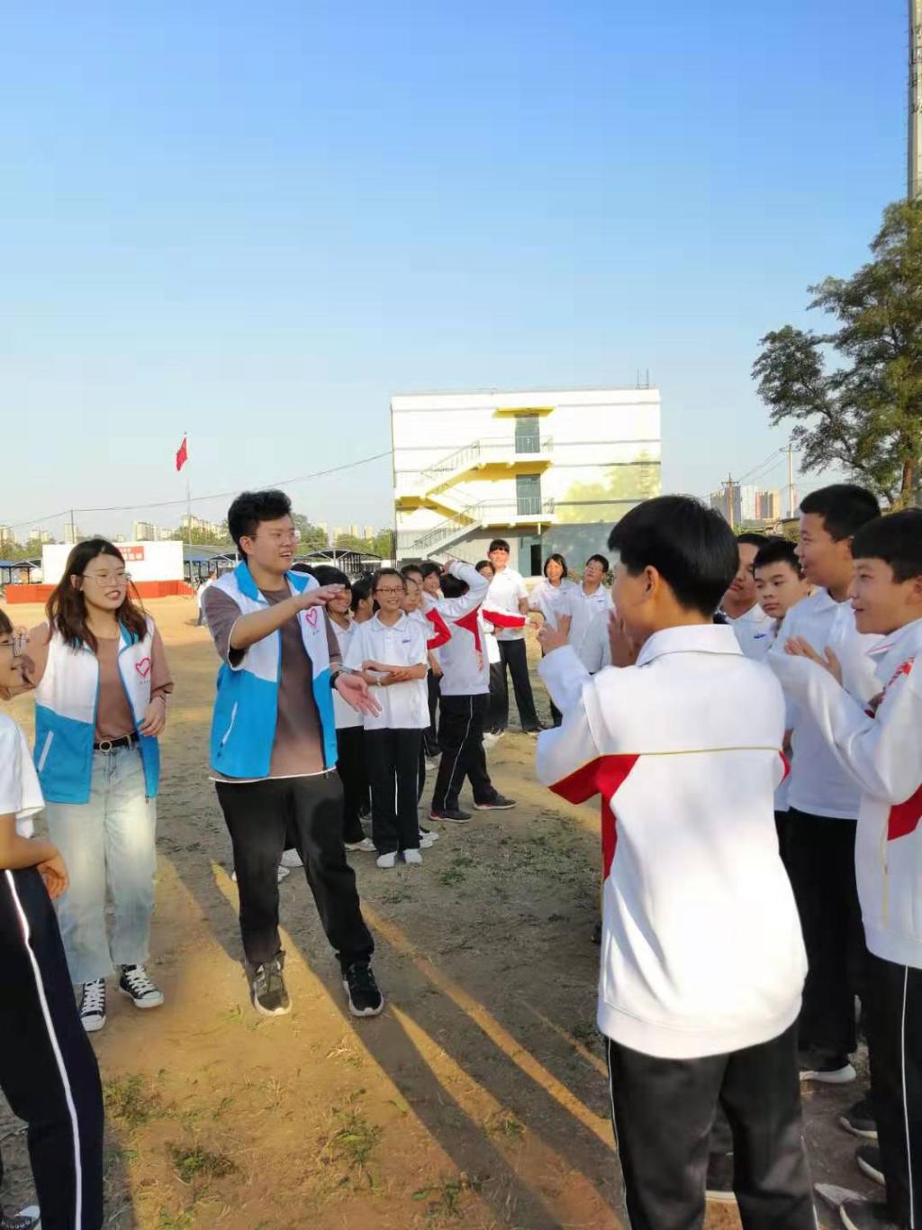 2019年9月24日下午两点半,tyc122ccVIPtyc122ccVIP老员工咨询中心的志愿者到达唐山市第五十三中学,与该校心理咨询室霍老师确定具体事宜后,带领七年级全体员工在操场举行“破冰之旅”大型心理团辅活动。