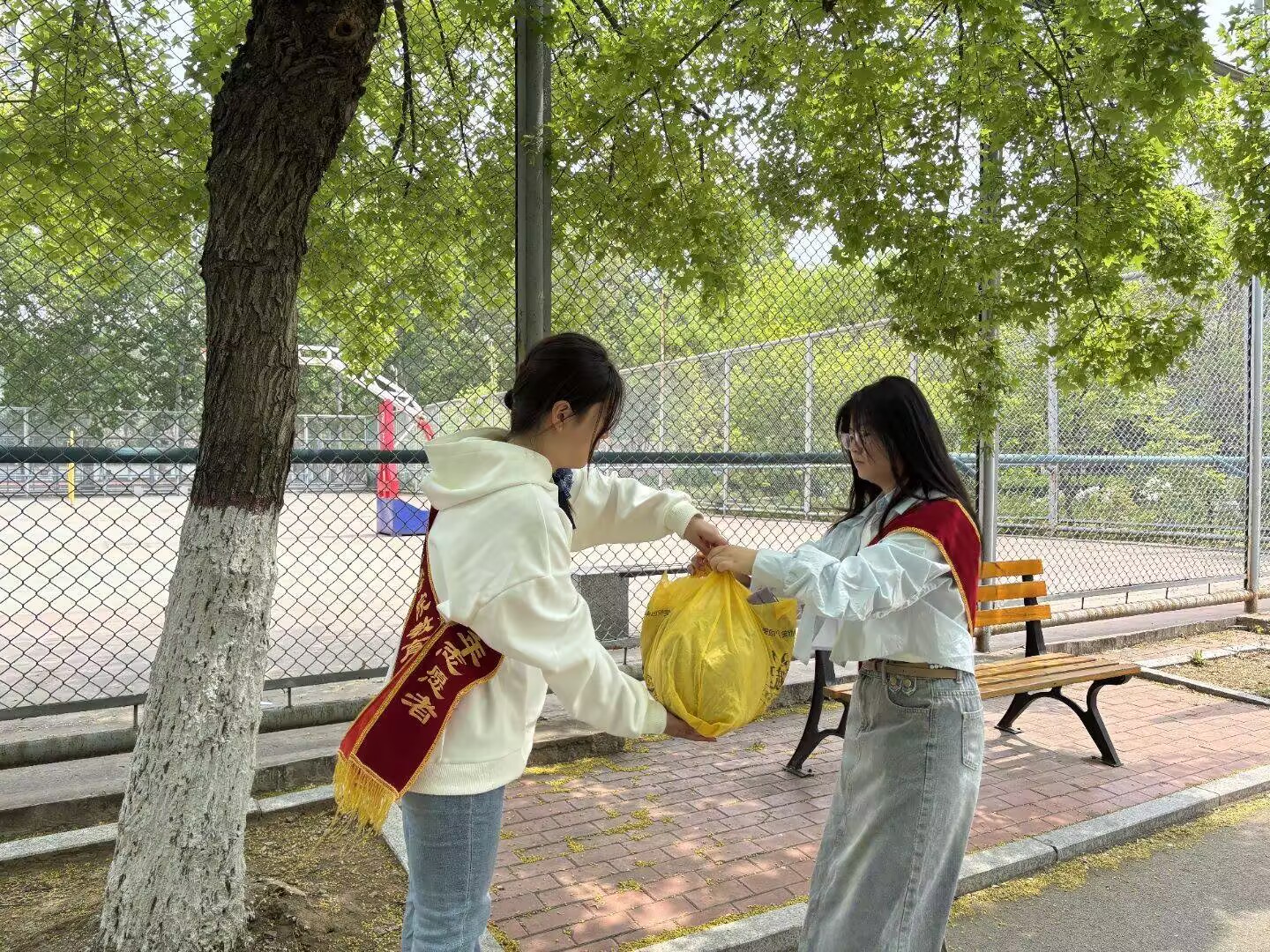 “鲜衣怒马少年时,不负韶华行且知 。”活动当日,志愿者们满怀热忱,早早来到固定点位,严阵以待。捐赠者接踵而至,将满载心意、精心整理的衣物递入。志愿者双手郑重接过,迅速接力传递,动作一气呵成。有人专注核对衣物数量,笔下记录着爱心的重量;有人精心分类整理,眼中满是认真。现场氛围热烈,每一次传递,都承载着同学们炽热的善意,正如“燃情暖岁寒,爱意永不残”。
