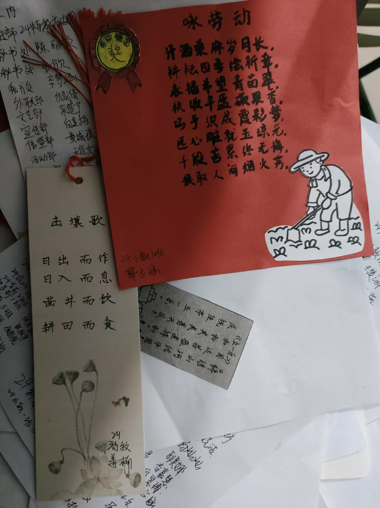 在此次活动中,同学们积极参与,围绕劳动精神、工匠精神、青春奋斗等题材进行诗歌创作,或书写铿锵有力的现代诗,或创作典雅隽永的古体诗,以不同的形式展现劳动的光荣与伟大。表达了同学们对劳动者的赞美以及对青春梦想的追求。一首首饱含真挚感情的诗歌,展现了同学们对劳动价值的深刻理解与崇高敬意。