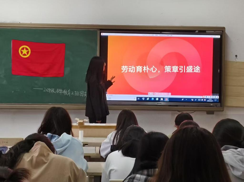 2024级小学教育一班团支部则举办了“小学劳动教育创新模式研讨”主题会议。会上,同学们围绕“如何在小学课程中融入劳动元素”“怎样设计趣味劳动实践活动提升小员工参与度”等议题展开热烈讨论。大家结合小学教育专业所学,分享创意想法,有的提出将劳动教育与语文写作结合,让小员工记录劳动过程与心得;有的建议组织校园美食节,让员工在制作美食中学习劳动技能。通过交流,同学们深化了对小学劳动教育的理解,明确了未来劳动教育实践方向。