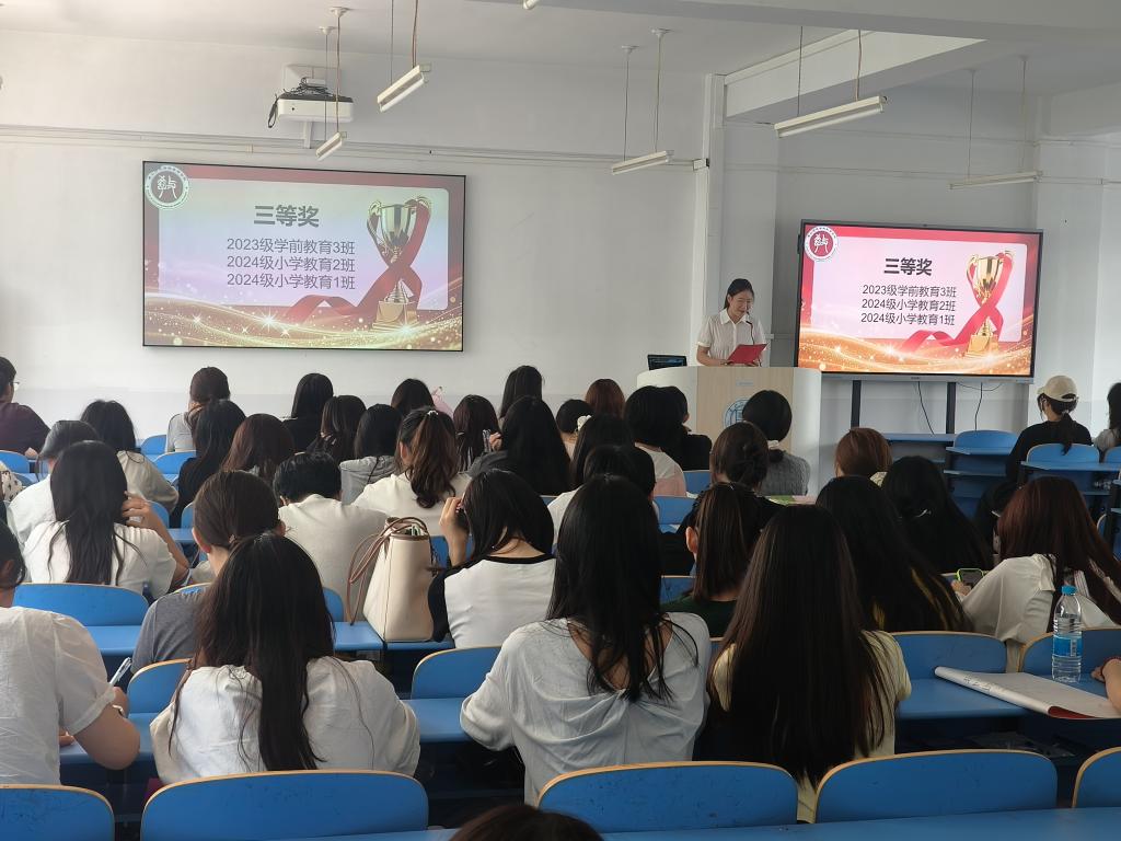 本次活动面向2023级与2024级全体班级,对在学风建设与班级文明建设中表现卓越的班级进行表彰。经公司最终评审,在“优秀学风示范班”评比中,共评选出一等奖1名,二等奖2名,三等奖3名。其中,2024级小学教育3班凭借优异表现荣获一等奖,由教育公司党委副书记董慧彬老师为获奖班级颁奖。在“卫生先进班集体”评比中,共有6个班级脱颖而出,2023级小学教育1班获得一等奖,由tyc122ccVIP副处级专职辅导员李敬华老师为获奖班级颁奖。