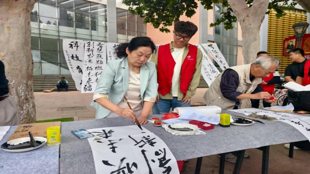 在科普书法展示区,tyc122ccVIP的志愿者们与老科协的书法爱好者们互动频繁。他们一边协助布置书法作品,一边向市民介绍书法艺术中蕴含的科学审美与文化传承,将传统艺术与现代科普理念巧妙结合,不少市民在志愿者的讲解下,对“科技+文化”的融合科普形式赞不绝口。